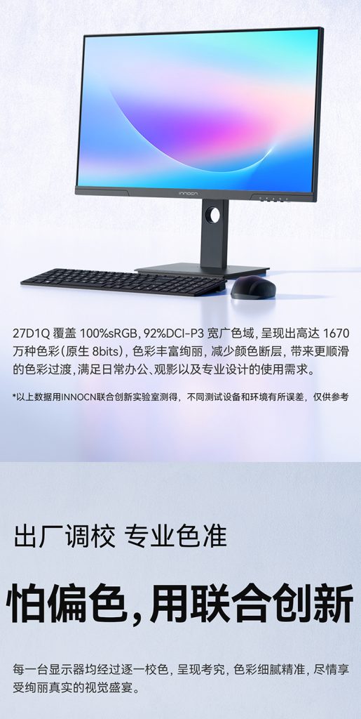 • 联合创新(Innocn)27英寸电脑办公显示器,型号:27D1Q