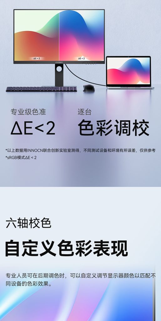 • 2K超清+98%P3专业色彩+Type-C65W+HDR400+旋转升降底座